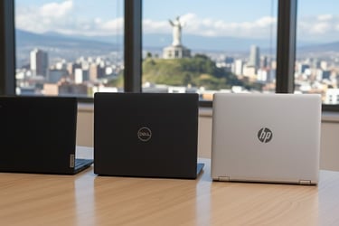Solo se adquieren líneas corporativas (ThinkPad, Latitude, EliteBook) que están hechas para durar 5–8 años sin perder rendimiento.