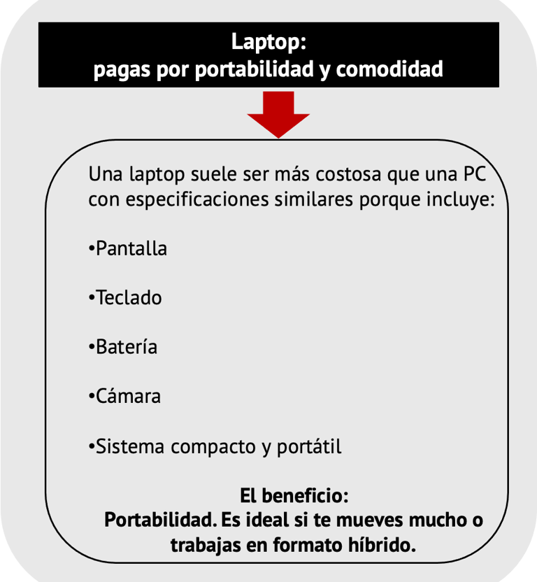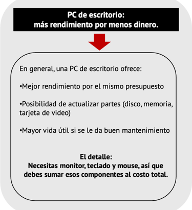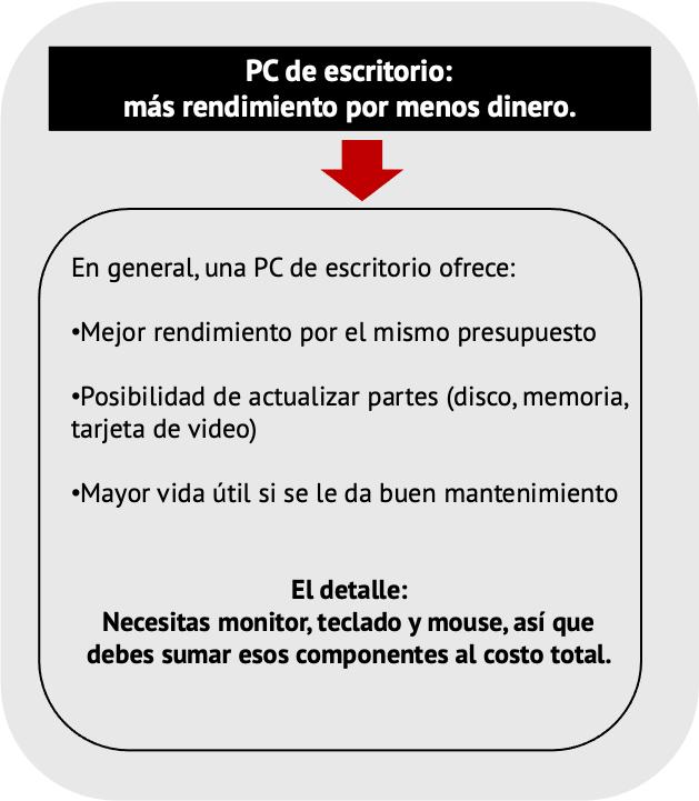 Una PC de escritorio ofrece más rendimiento por menos dinero.
