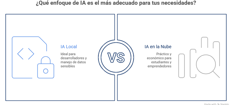 Para la mayoría de estudiantes y emprendedores en Quito, usar IA en la nube es más práctico, más económico y más eficiente.